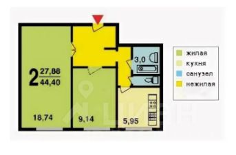 Предлагается светлая квартира с 2-мя спальнями, общей площадью 45 кв.м., в доме у парка.