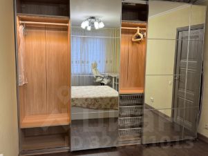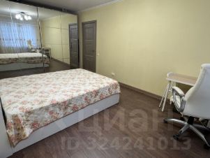 -основную спальню с двухспальной кроватью, рабочем столом с креслом и огромным зеркальным шкафом во всю стену с подсветкой