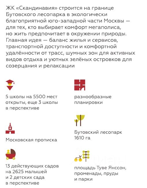 Это предложение станет отличным выбором для тех, кто ценит качество строительства, комфорт проживания и удобство инфраструктуры. Скандинавия один из лучших ЖК в России. Идеально для студентов или молодых пар. Также хорошая инвестиция для будущего. Прописка Москвы.