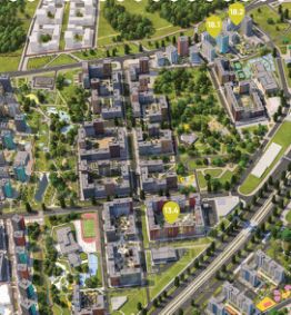 Жилой комплекс располагает развитой инфраструктурой: рядом находятся школа, детский сад, парк и фитнес-центр, что делает его идеальным местом как для молодых специалистов, так и для семей с детьми. Для маленьких жителей комплекса во дворе обустроены детская и спортивная площадки.