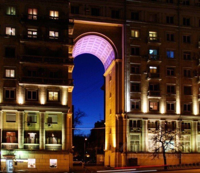 В уникальном доме с самой высокой аркой в Москве продаётся презентабельная квартира с двумя спальнями, гостиной комнатой, просторными кухней - столовой и санузлом.