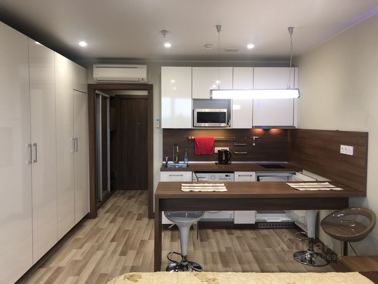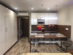 В квартире сделан дизайнерский ремонт: все продумано до мелочей. Студия полностью меблирована и укомплектована современной техникой, поэтому можно сразу заехать и жить. Просторный совмещенный санузел.