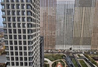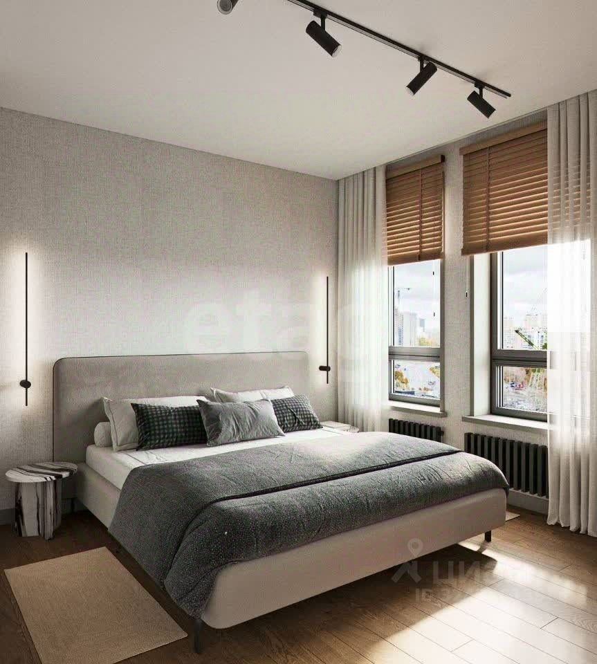 Много света и панорамный вид: Большие окна на 30-м этаже наполняют пространство светом и открывают вид на уютный двор без машин и современные жилые комплексы.