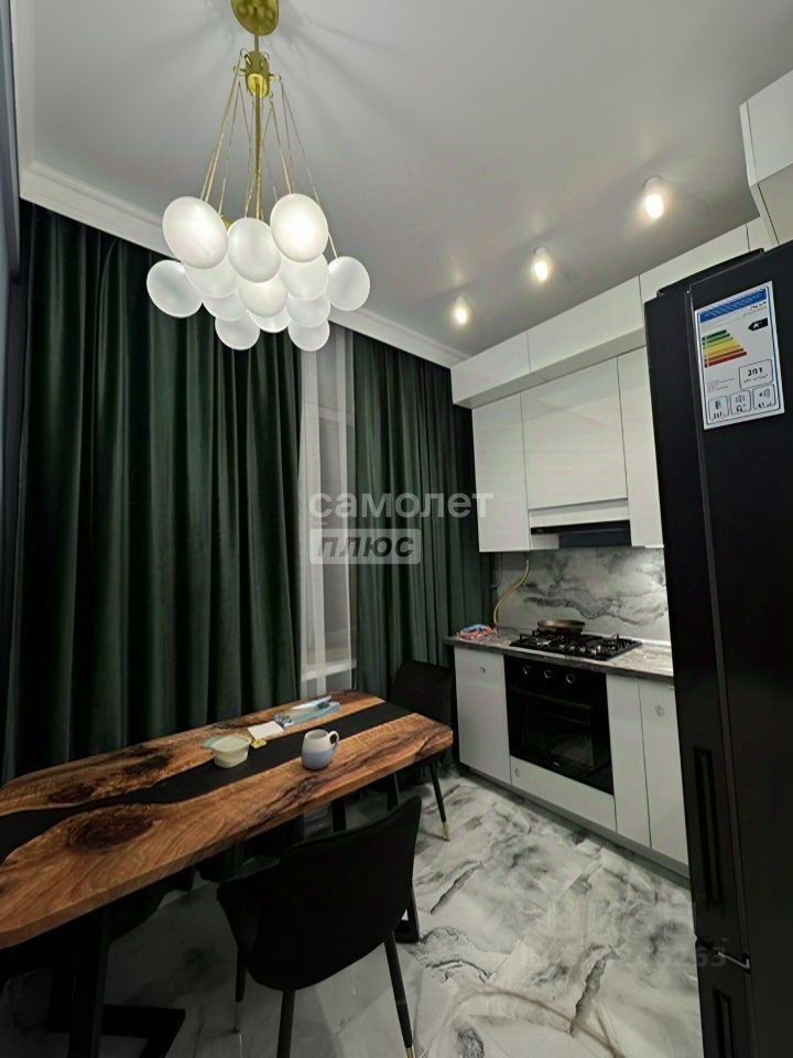 Пpоcторнaя кухня оснaщeнa соврeменнoй техникой для комфортного приготовления пищи.