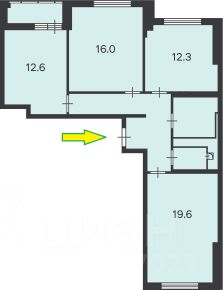 + можно сделать евро4, разместив кухню-гостиную справа, в комнате 19,4м2 (стояк с коммуникациями рядом)