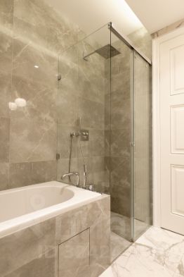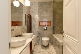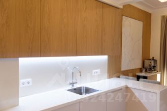 В квартире выполнен дизайнерский ремонтом с использованием высококачественных материалов, полностью меблирована и укомплектована премиальной бытовой техникой от Neef, качественной сантехникой европейского бренда Villeroy-Boch. Установлена система центрального кондиционирования, теплый пол. Высокие потолки и панорамные окна во двор комплекса создают ощущение простора и света.