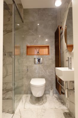 Функциональная и современная планировка: эргономично спланированная зона кухни-столовой и гостиной, оборудованные всей необходимой техникой для комфортного проживания, мастер-спальня со своим гардеробом и полноценным санузлом на 2 персоны (ванная и душ), десткая/кабинет с встроенным вместительным шкафом и рабочей зоной, гостевой санузел (душ), прихожая с встроенной системой хранения для вещей.