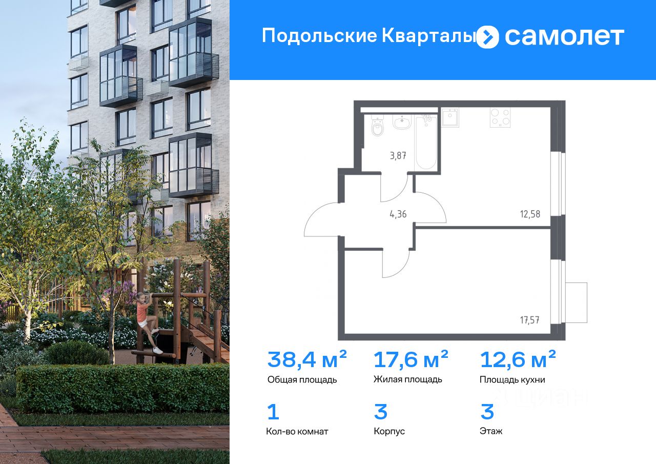 Строим кварталы для жизни с заботой о будущем. Предлагается 1-комнатная квартира комфорт-класса 38,38 кв.м в корпусе 3 на 3 этаже, в ЖК "Подольские Кварталы"
