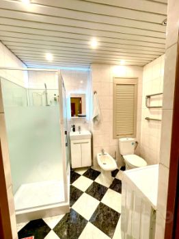 Квартира распашонка, имеет три изолированные комнаты, вспомогательное помещение (кладовая), просторную кухню, два санузла и две большие лоджии. Потолки 3,1 метра! Толстые внешние и межквартирные стены, делают квартиру очень теплой, с высокой степенью шумоизоляции. В каждой комнате кондиционер. (Мебель, по желанию, может быть вывезена в кратчайшие сроки)