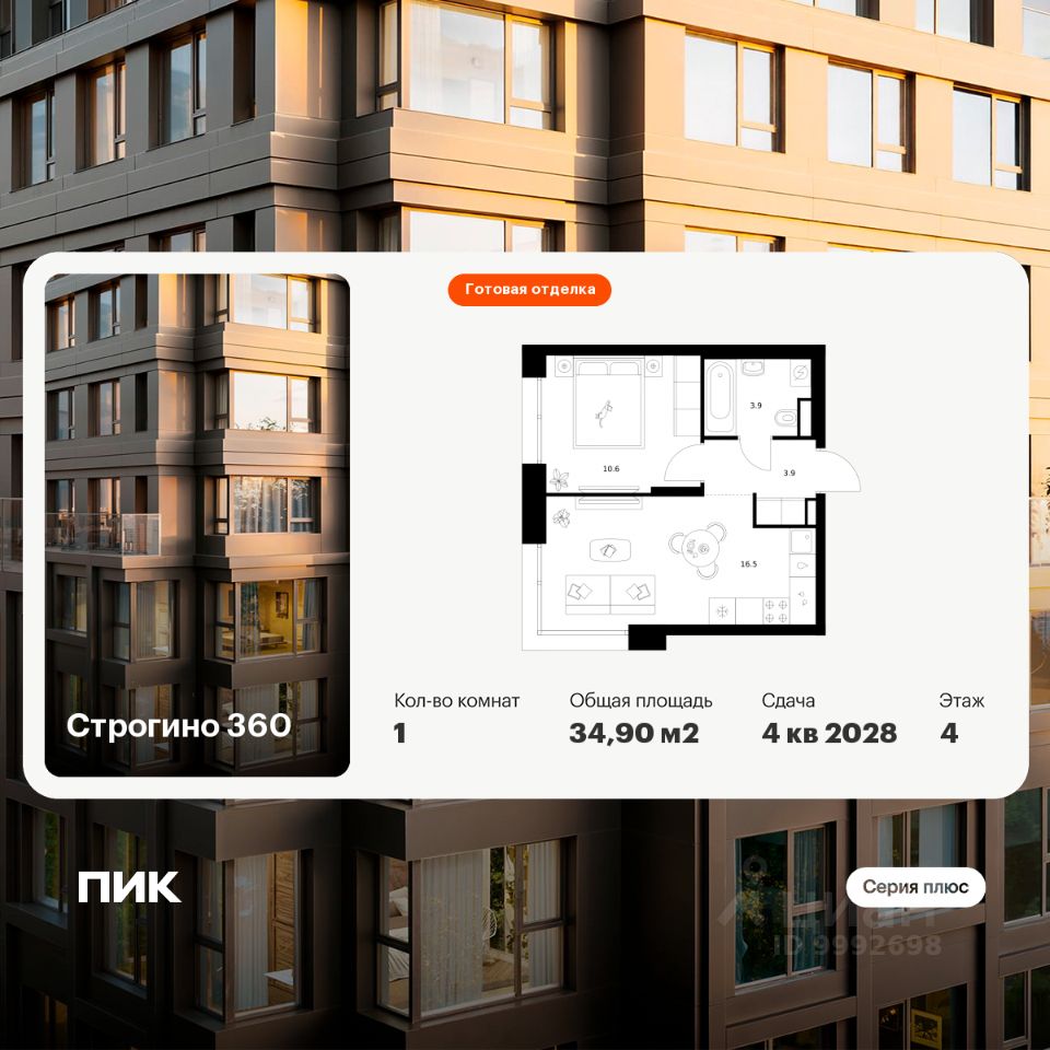 Новостройка! Продается 1-комн. кв-ра площадью 34,9 кв.м, (Корпус 1.1.3, Секция 3) 4 этаж 10-этажного дома в Строгино 360 от ПИК. Проект, где каждый день будет наполнен гармонией и новыми возможностями, где можно найти идеальный баланс между энергией большого города и спокойствием природного окружения. Это настоящая экосистема в окружении четырех парков и набережной Москвы-реки, где современная архитектура, умные технологии и продуманная среда создают новое качество жизни.