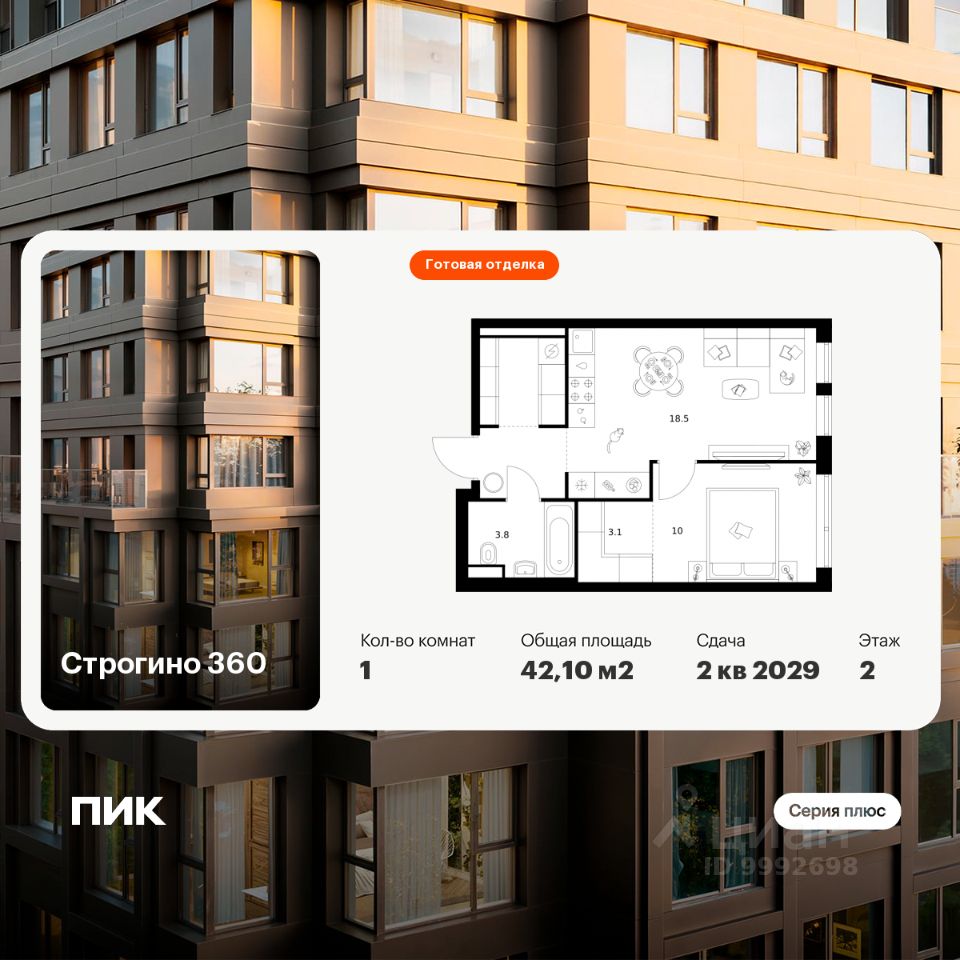 Новостройка! Продается 1-комн. кв-ра площадью 42,1 кв.м, (Корпус 1.2, Секция 1) 2 этаж 30-этажного дома в Строгино 360 от ПИК. Проект, где каждый день будет наполнен гармонией и новыми возможностями, где можно найти идеальный баланс между энергией большого города и спокойствием природного окружения. Это настоящая экосистема в окружении четырех парков и набережной Москвы-реки, где современная архитектура, умные технологии и продуманная среда создают новое качество жизни.