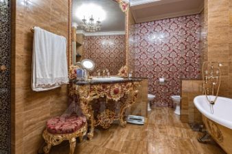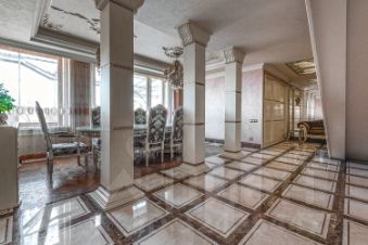 Ремонт в классическом стиле выполнен с любовью к деталям и наполнен декоративным элементами. В отделке использованы натуральный мрамор и оникс, массив дерева, кованные элементы. Вся мебель и встроенные шкафы изготовлены на итальянских фабриках по индивидуальному проекту. Монтаж, сборка, установка и ремонтные работы выполнялись испанскими работниками.