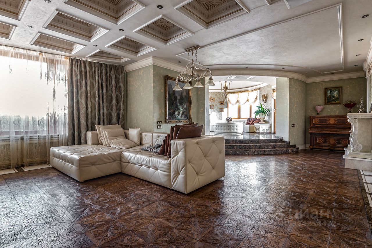 На первом уровне расположены основной вход, прихожая с просторным шкафом-купе с отделкой из светлой кожи и лестница с кованными перилами, ведущая на второй уровень. К просторной гостиной примыкает эркерная зона с полукруглым диваном, откуда можно попасть на две просторных веранды. Также на первом уровне расположены гостевой с/у и дополнительная кухня/бар и большая столовая с овальным столом, отделенная колоннами.