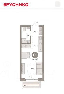 Площадь: 26.4 м² — уютное и функциональное пространство для одного человека или пары.
