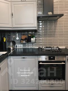 На кухне большая посудомоечная машина, электрическая духовка и газовая плита.