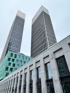 - двухуровневое благоустройство (второй уровень стилобат) с парящим мостом, детскими и спортивными площадками;