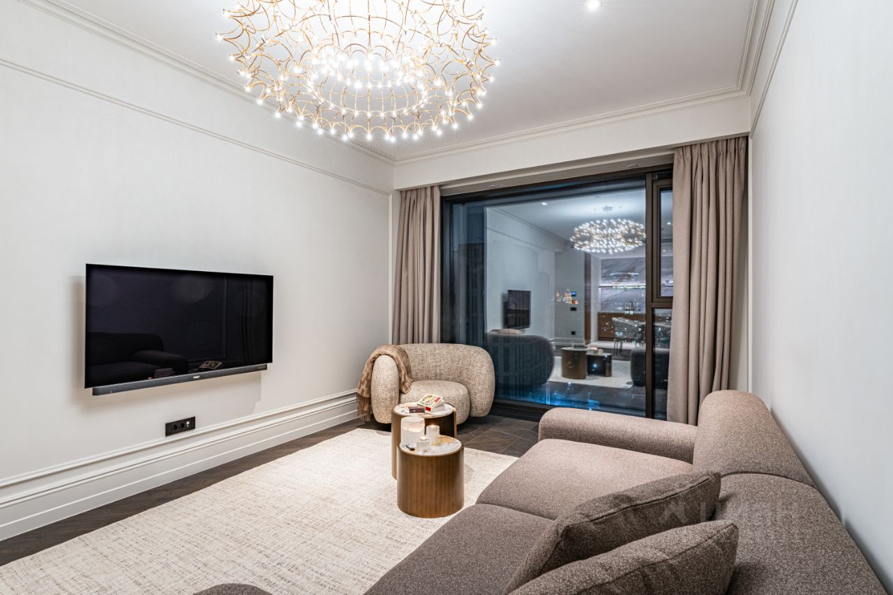 В обстановке использованы мебель и предметы декора премиальных брендов, включая коллекции Como Casa; текстиль — ткани из Англии и Италии с гидрофобной обработкой. Пространство дополняют выставочные дизайнерские люстры Bezhko.