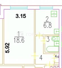 Общая площадь квартиры — 32,2 кв. м, жилая — 18,6 кв. м, площадь кухни — 6,8 кв. м. Окна выходят на улицу, комнаты изолированы.