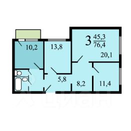 Три изолированные комнаты: площадью 21 м2, вторая площадью 12 м2, третья комната площадью 14 м2. Просторный холл 9 м2.