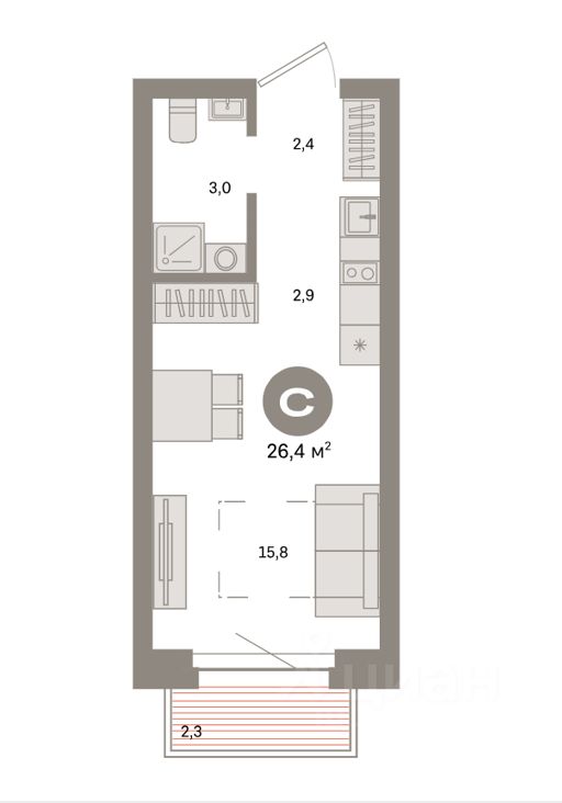 Студия 26,4 м2 в ЖК "Метроном" с отделкой White box, все грязные, пыльные, шумные работы уже выполнены: стяжка пола с шумо-и гидроизоляцией, выстроены и выровнены межкомнатные стены, разведена электрика и слаботочка.