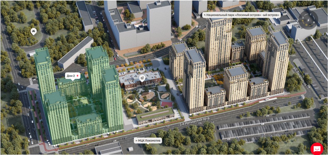 Жилой комплекс расположен в районе с хорошо развитой инфраструктурой. В пешей доступности имеется все необходимое: продовольственные магазины, медицинские и образовательные учреждения, аптеки, кафе и рестораны. Школа строится в 2-х минутах ходьбы от дома. В 10 минутах пешком от дома парк Лосиный остров.