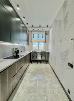 •Напольное покрытие: керамогранит и инженерная доска из ценных пород дерева,что будет подчеркивать стиль и качество ВАШЕГО жилья!;