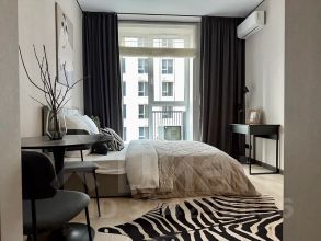 В квартире сделан дизайнерский ремонт с использованием качественных материалов и полностью укомплектован техникой. Оборудован большой встроенный шкаф.