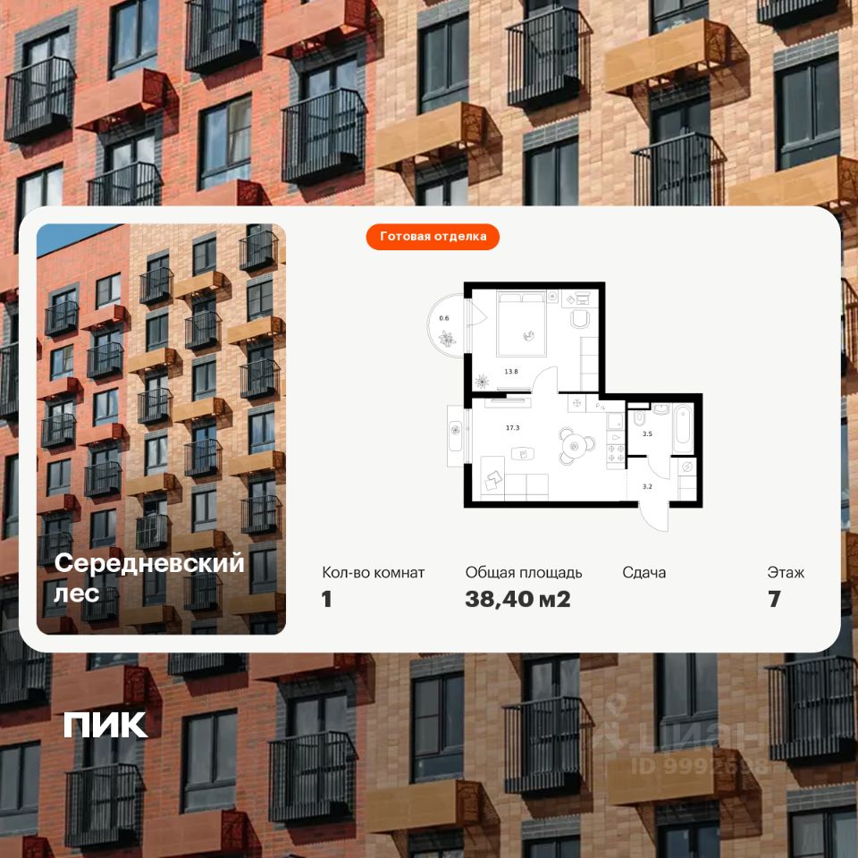 Продаётся 1-комн. квартира площадью 38,4 кв.м на 7 этаже 16 этажного дома (Корпус 2.1.6, Секция 6) проекта ПИК Середневский лес. Светлый просторный подъезд на уровне земли, функциональная планировка, большие окна, c отделкой.