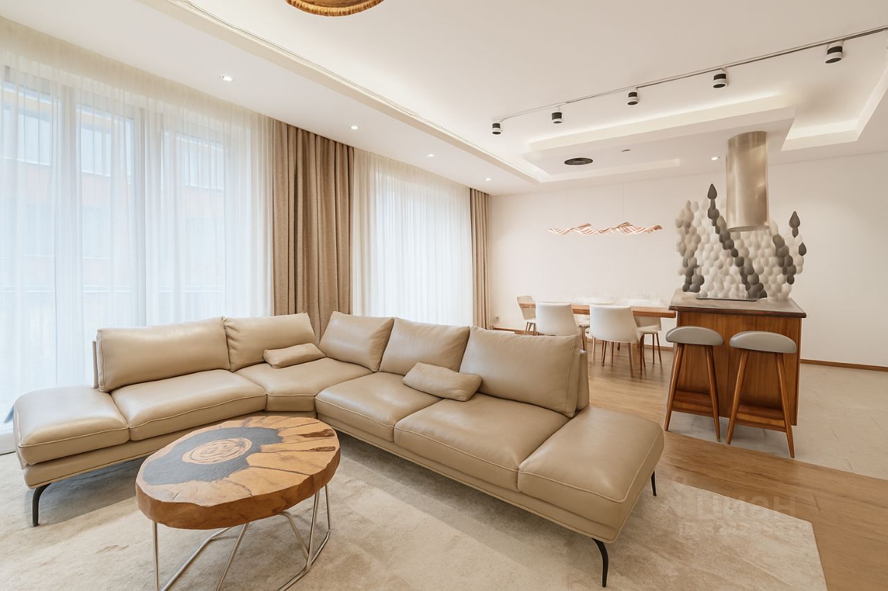 В квартире выполнен премиальный ремонт с использованием натуральных материалов. Установлена мебель, техника и сантехника от ведущих мировых брендов. Высокие потолки - 3,1 м!