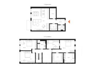 2-й уровень: мастер-спальня с собственной ванной и гардеробной комнатами, 2 спальни, ванная комната.