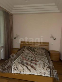 В спальне большая двуспальная кровать, две тумбочки, небольшой, но функциональный рабочий стол, комод. Огромный встроенный шкаф.