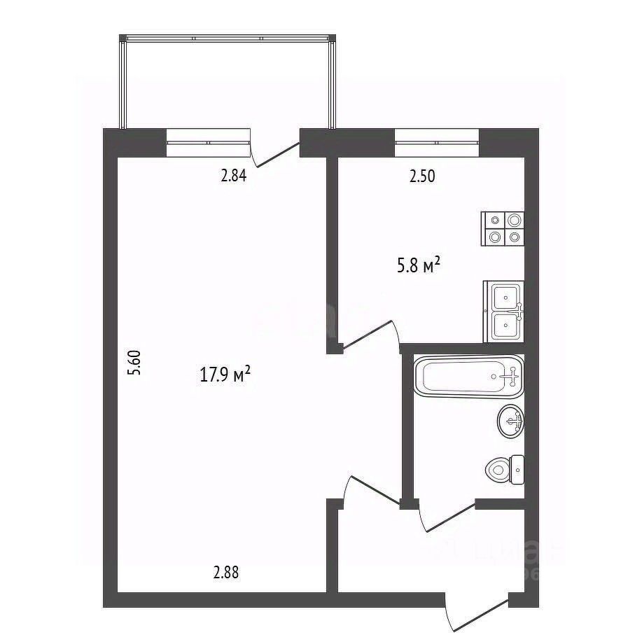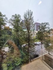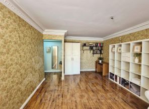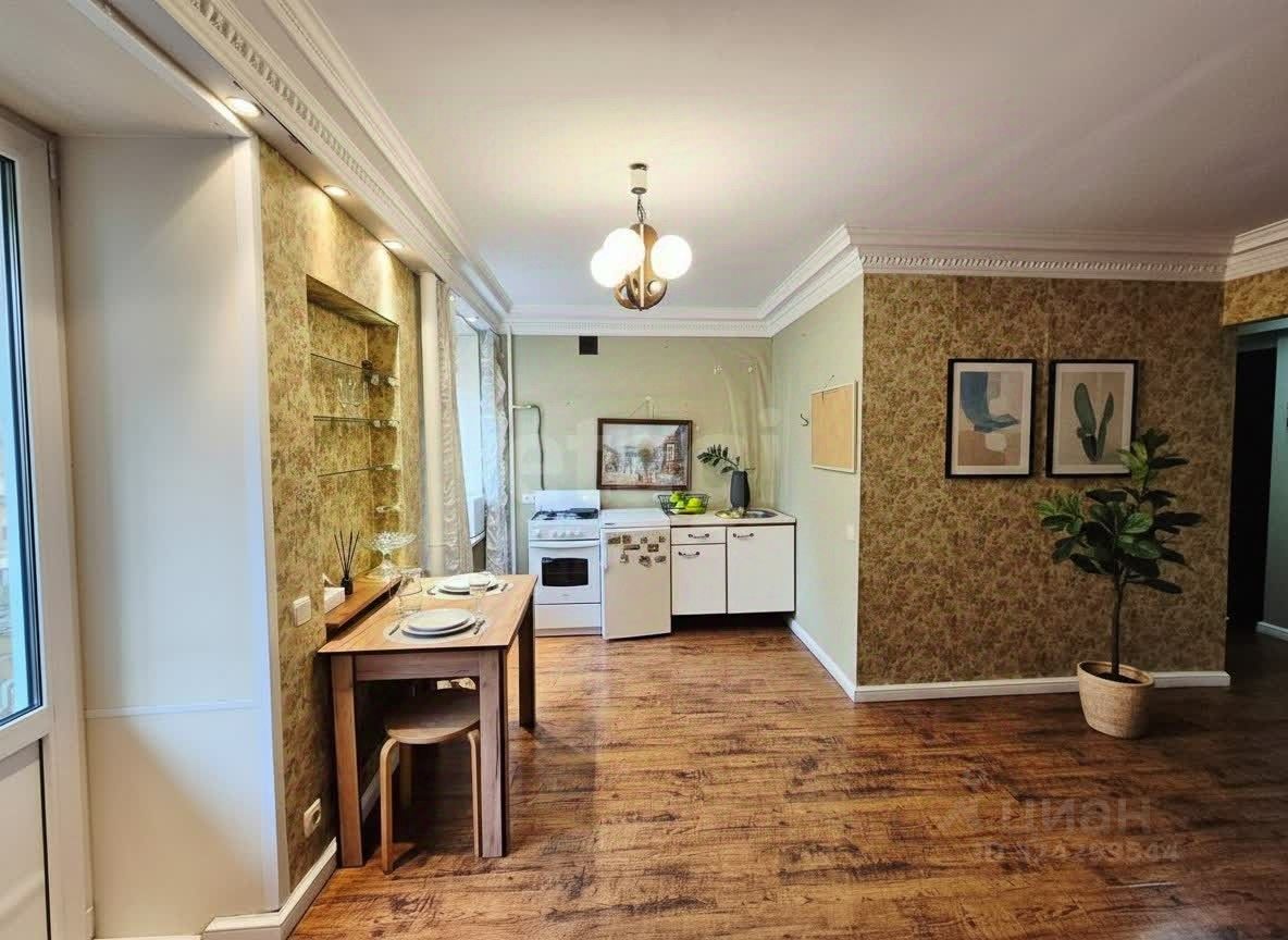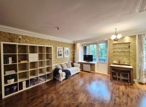 Удачная планировка: просторная кухня-гостиная и выход на лоджию с видом на тихую зеленую улицу, совмещенный санузел.