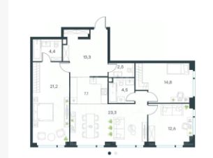 Квартира площадью 103,8 кв. м на 25 этаже жилого комплекса бизнес-класса Level Мичуринский предлагает редкое сочетание масштаба и панорамных видов.