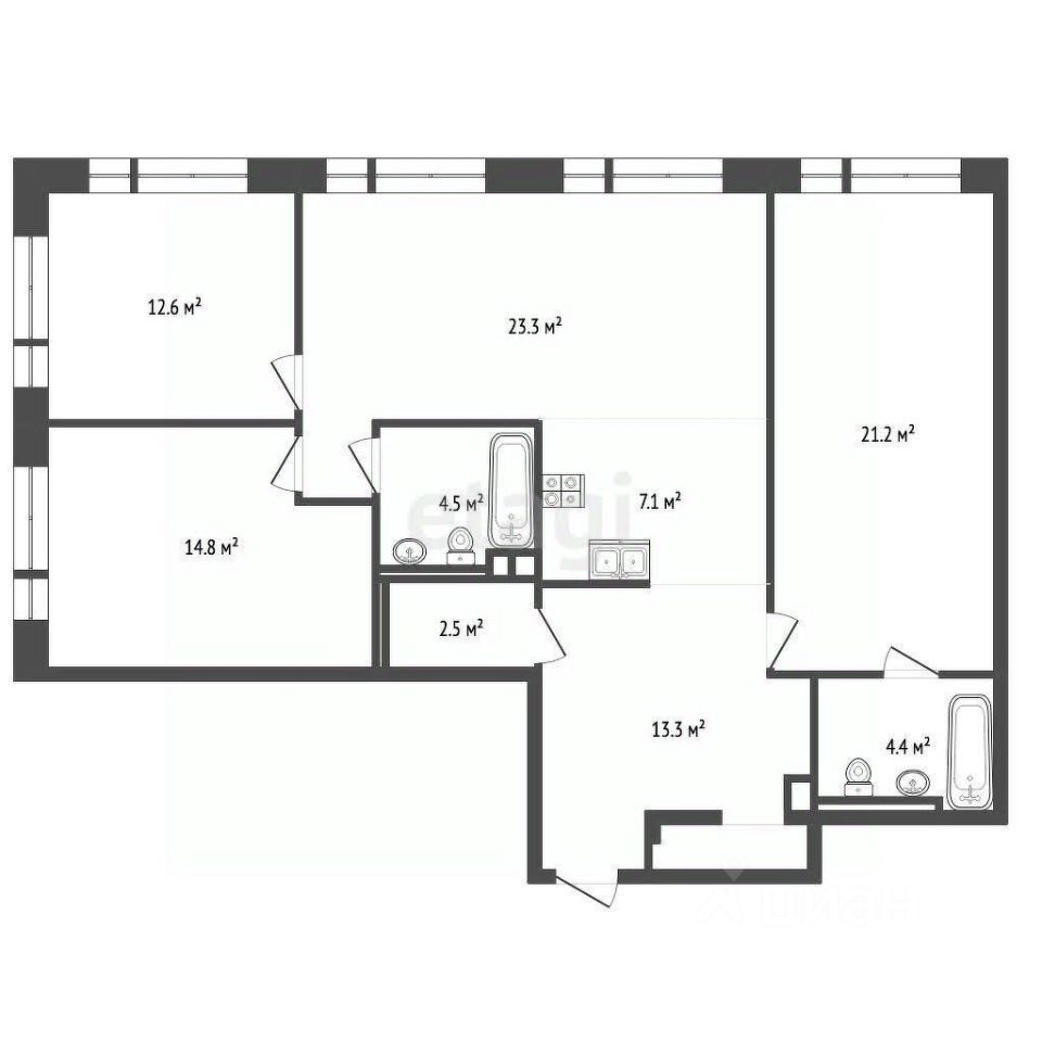 Высота потолков 3,1 м и окна в пол визуально расширяют пространство, наполняя его светом в течение всего дня. Функциональная планировка включает изолированную кухню-гостиную, три отдельные спальни и три санузла, что идеально для жизни большой семьи или работы с несколькими домашними кабинетами. Инженерное оснащение продумано до мелочей, включая удобную систему проветривания через форточки.