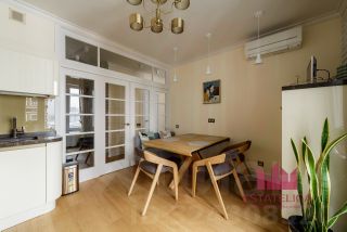 - Просторная входная группа с высоким шкафом-купе и выделенной нишей с коллекторной разводкой, которая скрыта за реечным фасадом. Кухня отделена от коридора стеклянной перегородкой с распашной дверью. Кухня "МАРИЯ" со встроенной техникой: индукционная варочная панель, духовой шкаф, посудомоечная машина, холодильник. Гостиная и спальная комната полностью меблированы.