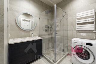 - В отделке ванной комнаты используется крупноформатный керамогранит. Установлена немецкая душевая система "HANSGROHE": тропический, обычный и душ-каскад, со встроенным терморегулятором. Проточный водонагреватель, электрический полотенцесушитель, инсталляция "JACOB DELAFON". Ванная гарнитура с итальянской столешницей и зеркалом с подсветкой. Установлен АКВА-СТОРОЖ система анти-затопления.