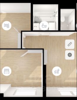Планировка: 2 изолированные комнаты + кухня-гостиная