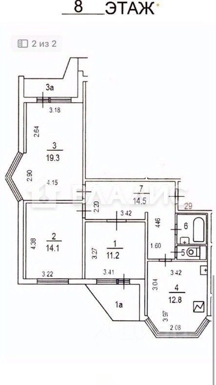 Расположенная на восьмом этаже 17-этажного панельного дома, построенного в 2002 году