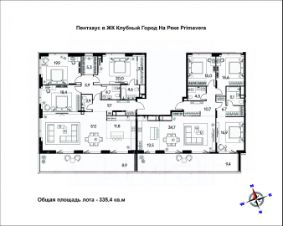 - Общая площадь лота - 335,4 м², из них площадь террасы - 54,9 м².