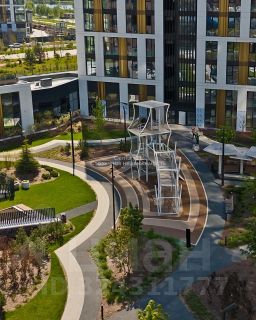 На территории самого ЖК продуман центральный прогулочный бульвар, который включает в себя: 4 функциональные зоны, детские площадки с батутами и современными игровыми комплексами, непрерывные беговые дорожки и спортивные комплексы марки Kompan, лаунж-зоны с качелями, шезлонгами и лавочки с WiFi.