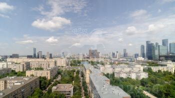 Панорамные окна с видом в сторону Москва-Сити и Кутузовского проспекта. Премиальная отделка в стиле "Модерн" с лаконичным дизайном в теплых природных оттенках.