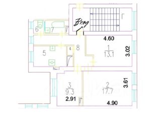 Жилая площадь - 40.5 (17.7+9.3+13.1)