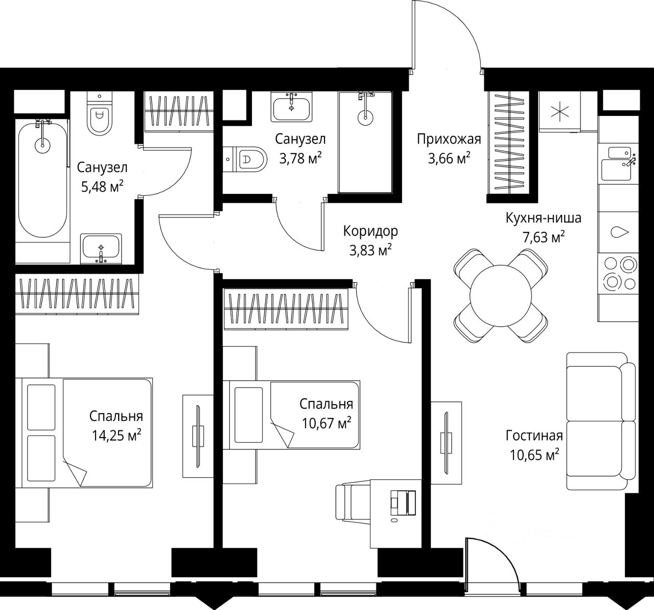 В продаже квартира площадью 59.95 м² без отделки на 4 этаже 46 этажного дома. Квартира расположена в корпусе Leo.