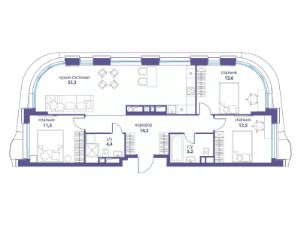Продается 3-комнатная квартира от застройщика: общая площадь 93.80 м², жилая 37.60 м², кухня 32.30 м², 19-й этаж, жилой квартал "Вдохновение", корпус 35 (секция 1). Срок сдачи: 4 квартал 2027 года.