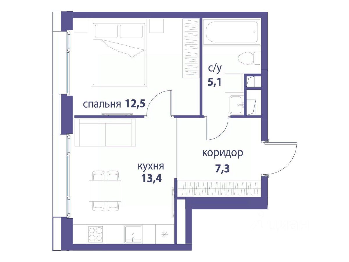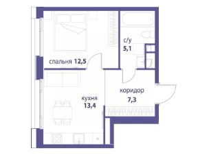 Продается 1-комнатная квартира от застройщика: общая площадь 37.70 м², жилая 12.50 м², кухня 13.40 м², 21-й этаж, жилой квартал "Вдохновение", корпус 32 (секция 1). Срок сдачи: 4 квартал 2027 года.