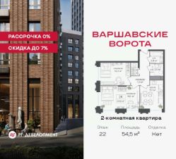 Продаётся 2-комнатная квартира 54,5 кв.м. в МФК "Варшавские ворота" на 22-м этаже 30 этажного дома. МФК "Варшавские ворота" — это точка баланса между природой и городом, стилем и функциональностью, жизнью сегодня и устойчивым будущим.