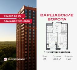 Продаётся 1-комнатная квартира 42.2 кв.м. в МФК "Варшавские ворота" на 25-м этаже 30 этажного дома. МФК "Варшавские ворота" — это точка баланса между природой и городом, стилем и функциональностью, жизнью сегодня и устойчивым будущим.