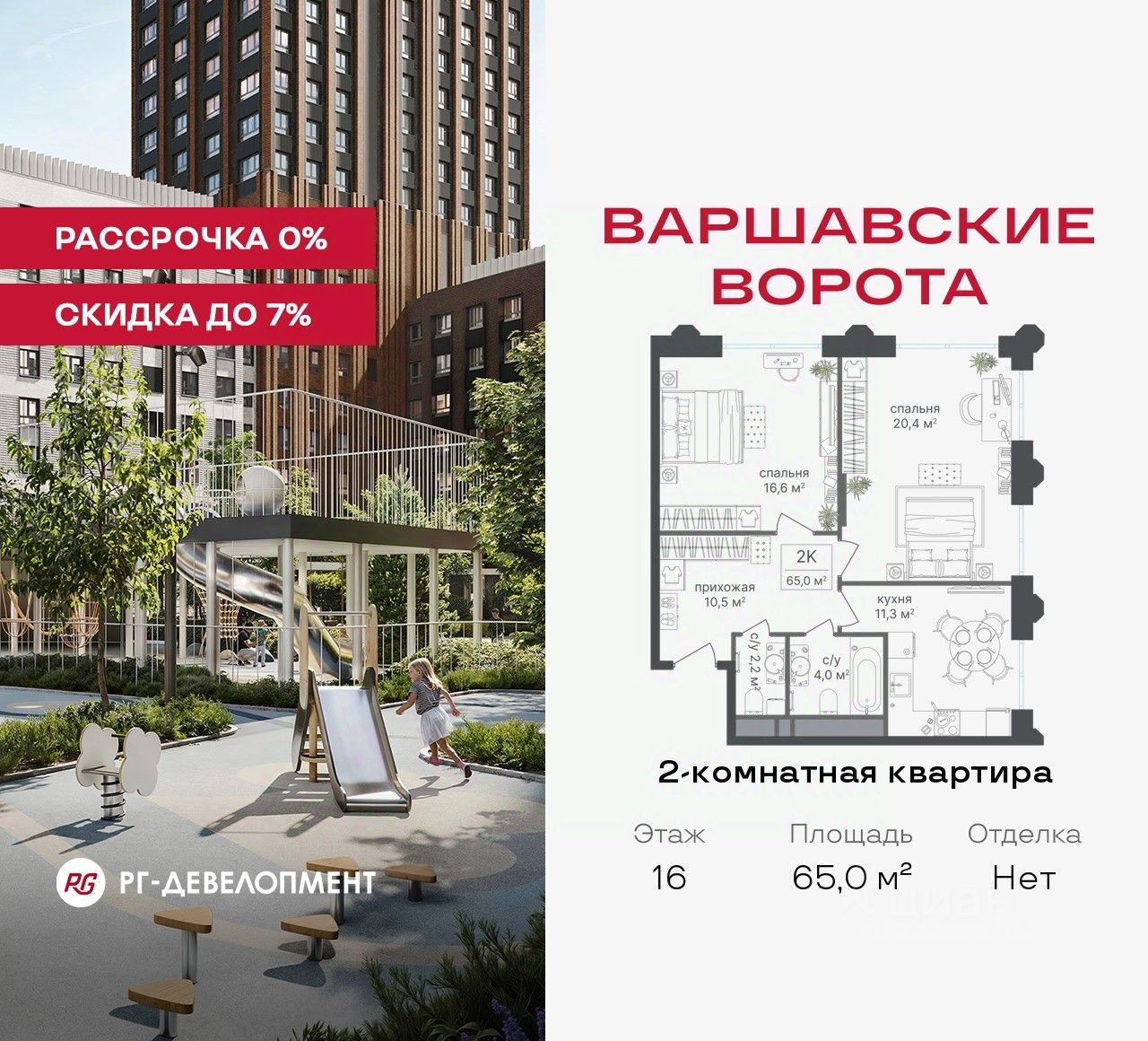 Рассрочка 0% + скидка 5%. Первый платёж 50% при ДДУ, второй 50% — через 12 мес. до ввода ЖК.