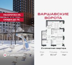 Продаётся 2-комнатная квартира 61.1 кв.м. в МФК "Варшавские ворота" на 27-м этаже 30 этажного дома. МФК "Варшавские ворота" — это точка баланса между природой и городом, стилем и функциональностью, жизнью сегодня и устойчивым будущим.