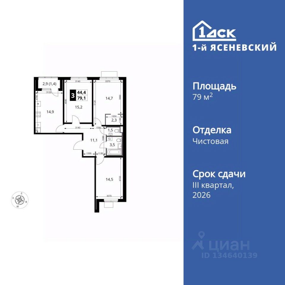 Продаётся 3-к квартира номер 413 общей площадью 79.1 кв.м. на 9-м этаже 9 этажного здания. Чистовая отделка. Цена с учётом скидки.